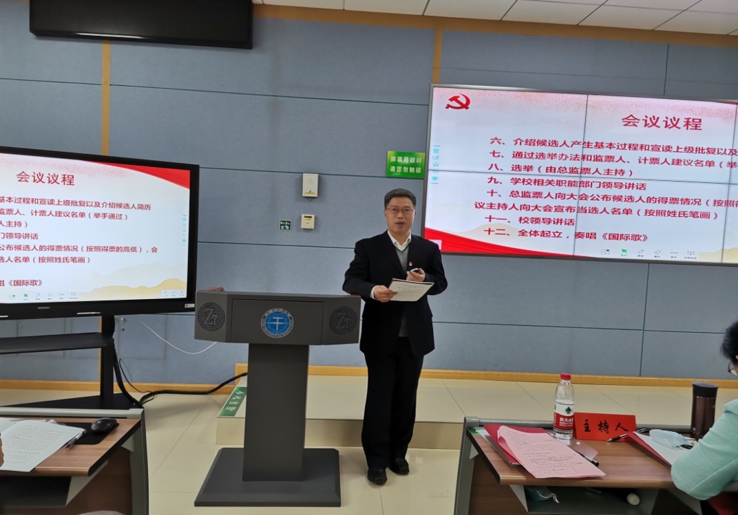 大会应到参会党员 112人,实到党员101人。其中教职工党员91人,学生党员代表10人。与会党员佩戴党徽入场并以支部为单位按指定位置就座。梁玉军、娄筱叮、王群英等党外人士应邀列席。校党委常委、副校长王华,组织部副部长冷再心出席会议。