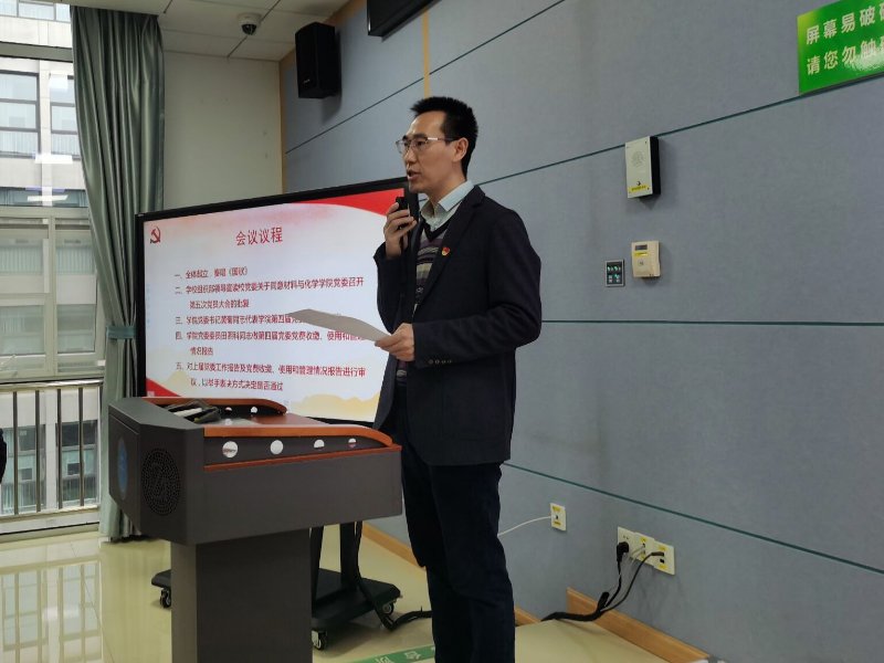 院党委书记黄菊代表JS33333线路登录第四届党委作了题为《励精图治顽强奋斗努力开创材料与化学领域国内一流国际知名研究型学院建设发展新局面》的工作报告。报告系统总结了过去五年取得的工作成绩与经验启示,提出新一届党委的奋斗目标与愿景,希望全院党员同志与广大师生高举习近平新时代中国特色社会主义思想伟大旗帜,不忘初心,牢记使命,以永不懈怠的精神状态和一往无前的奋斗姿态,奋力开创材料与化学领域国内一流国际知名研究型学院建设发展新局面。院党委委员田熙科作了《JS33333线路登录党委党费收缴、使用和管理情况的报告》的报告,全体与会党员审议并通过了上述两个报告。