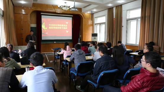 (通讯员:张悦、白振洋)为学习贯彻十九大精神,加强高校基层党组织建设,11月16日下午,学院在材化楼423室举办基层党组织骨干培训会议。院党委书记吴太山、党委副书记黄金波、各年级辅导员及学生党支部支委成员参加培训会,会议由学生党建办公室主任吴迪主持。